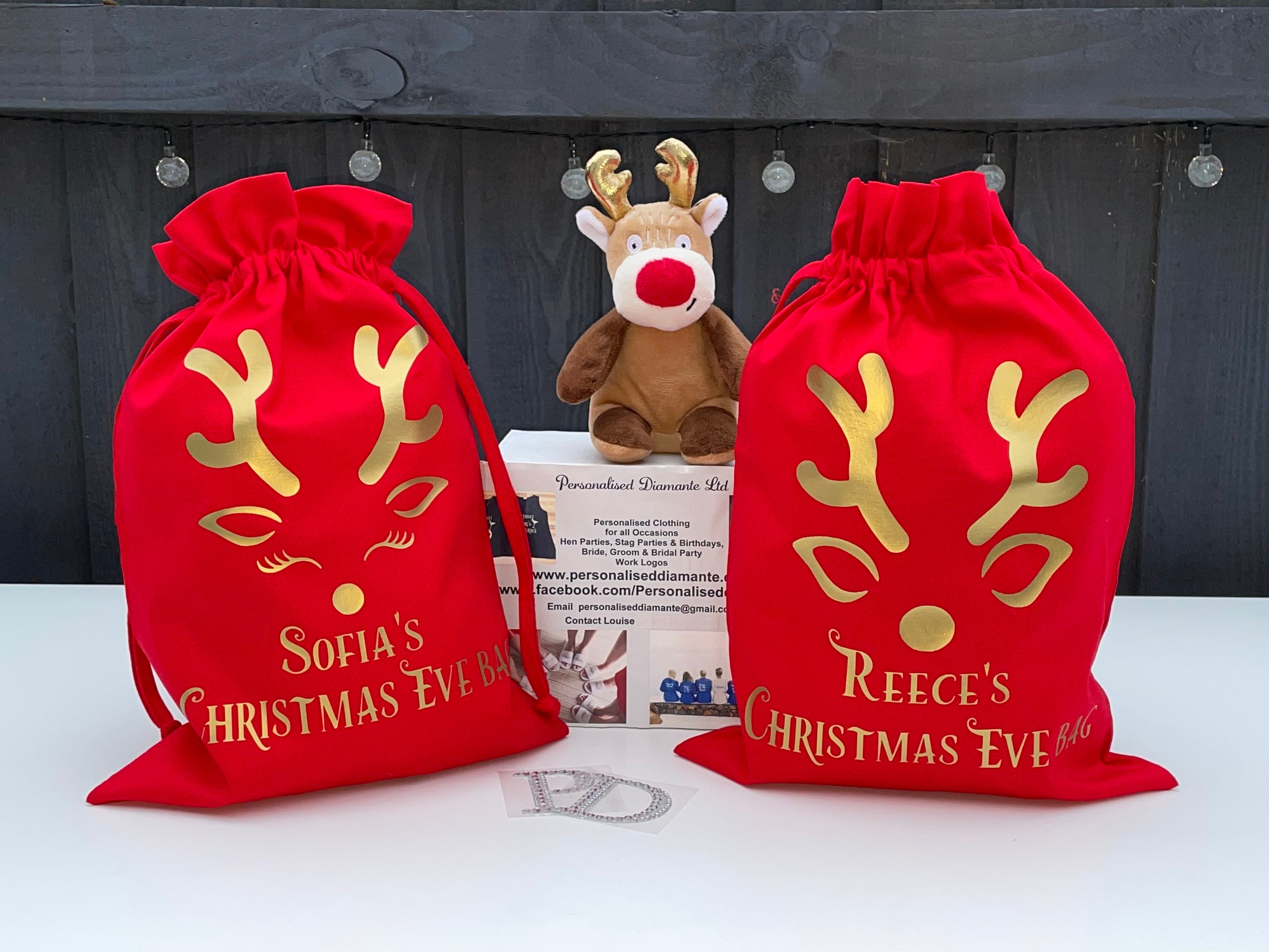 Christmas Eve Bag Box Sack Stocking Personalised With Name Etsy